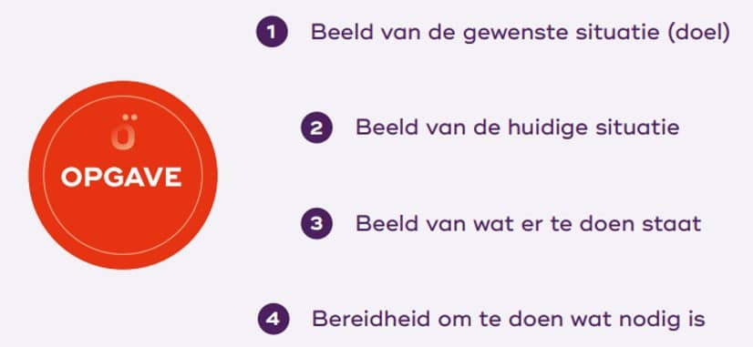 Ook hecht Igno eraan dat een zuiver onderscheid wordt gemaakt tussen een ‘doel’ of ‘bedoeling’ en een ‘opgave’. Het gezamenlijke en maatschappelijke doel dat we willen realiseren, beschrijft de gewenste situatie. Maar in zichzelf zet een doel niet aan tot actie. Pas wanneer de huidige situatie op basis van feiten en cijfers tegenover de gewenste situatie wordt gezet, en er een verschil zichtbaar wordt, wordt de opgave duidelijk. Dan weten we immers wat de te overbruggen afstand is, welke moeite dit gaat kosten en welke middelen en randvoorwaarden daarvoor nodig zijn. Bovendien is het bij opgavengestuurd werken essentieel dat alle betrokkenen bereid zijn om te doen wat nodig is om de opgave te realiseren. Voorbij hun eigen belangen en organisaties. Anders gebeurt er nog steeds onvoldoende.