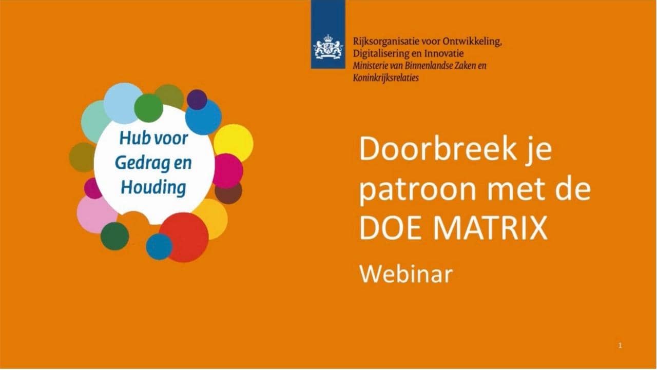 In dit webinar laat Sadije Bunjaku van het Expertisecentrum voor Gedrag en Houding zien hoe je de Doe-matrix kunt gebruiken als praktische reflectietool. De matrix is gebaseerd op de Coachmatrix van Maarten Kouwenhoven en op inzichten uit de Transactionele Analyse van Eric Berne.